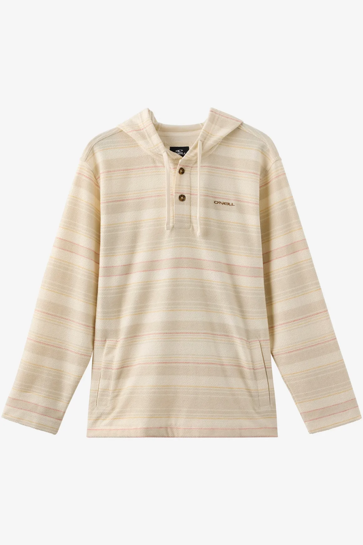 The Bavaro poncho offers a classic look with modern comfort in a standard fit. Made from a cotton-polyester blend with yarn-dye herringbone reverse French terry, it features a 3-button detail at hood and front kanga pocket for easy, everyday wear.