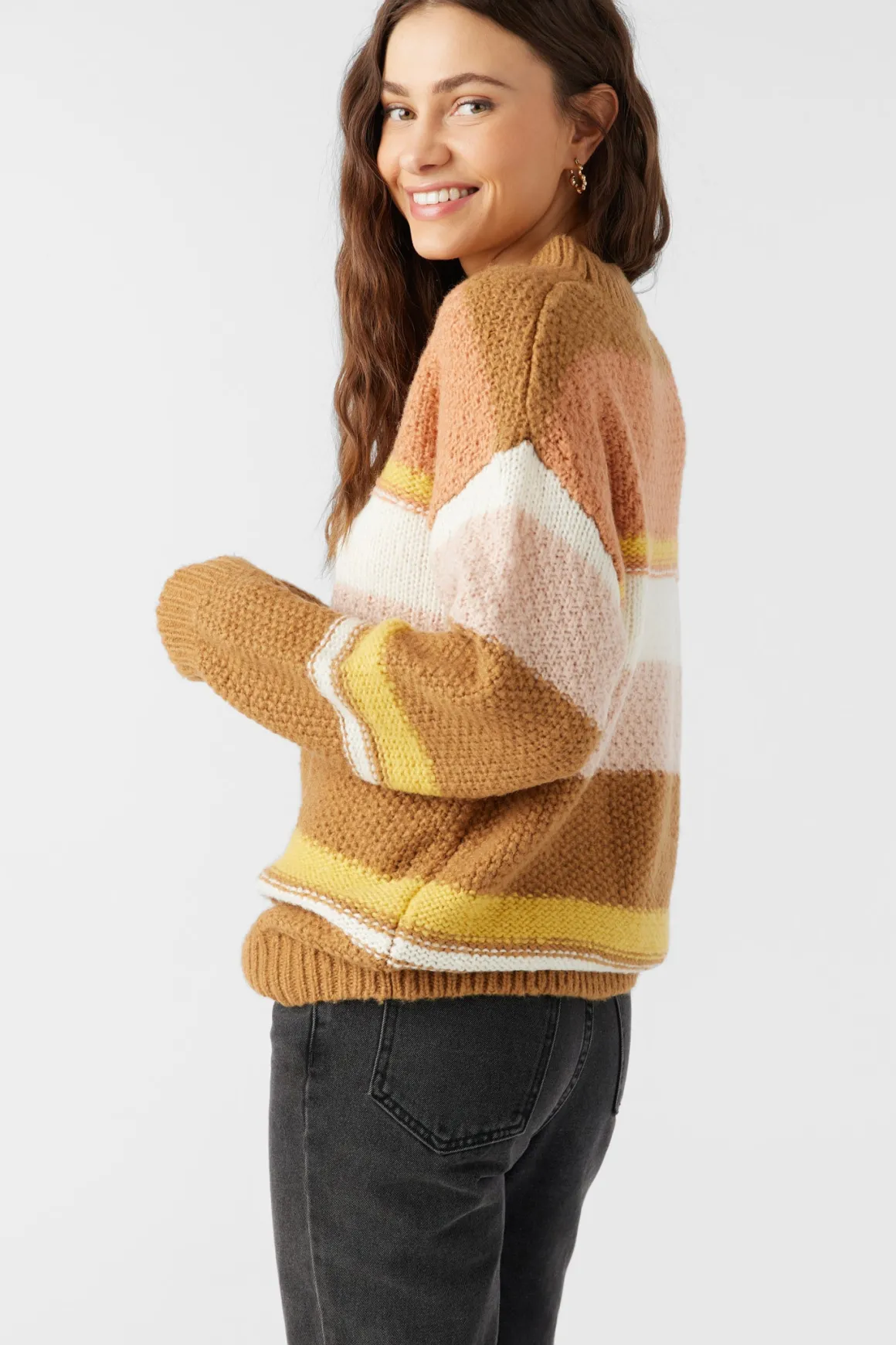 Long sleeve knit sweater that has a mock neck design and premium acrylic yarn feel.