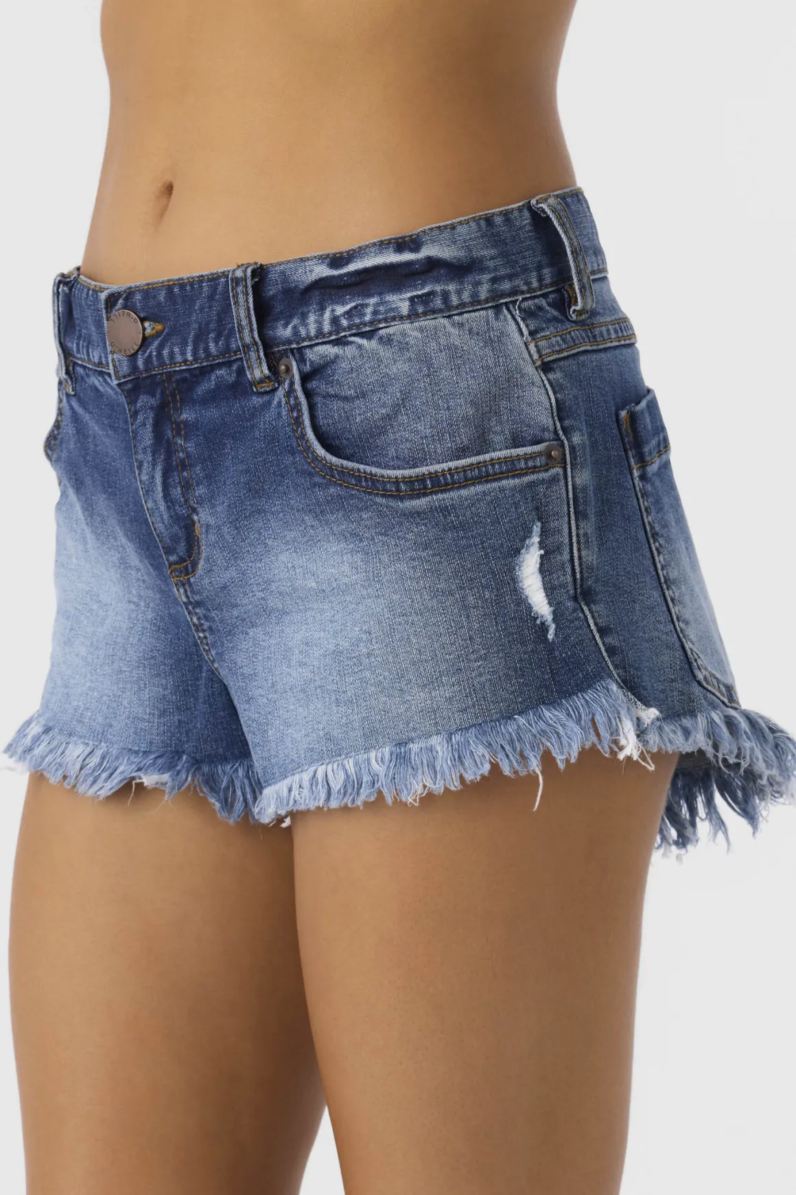 So essential denim shorts that have a low-rise fit, natural faded wash and raw hem design.