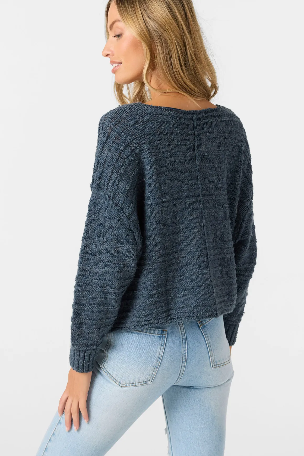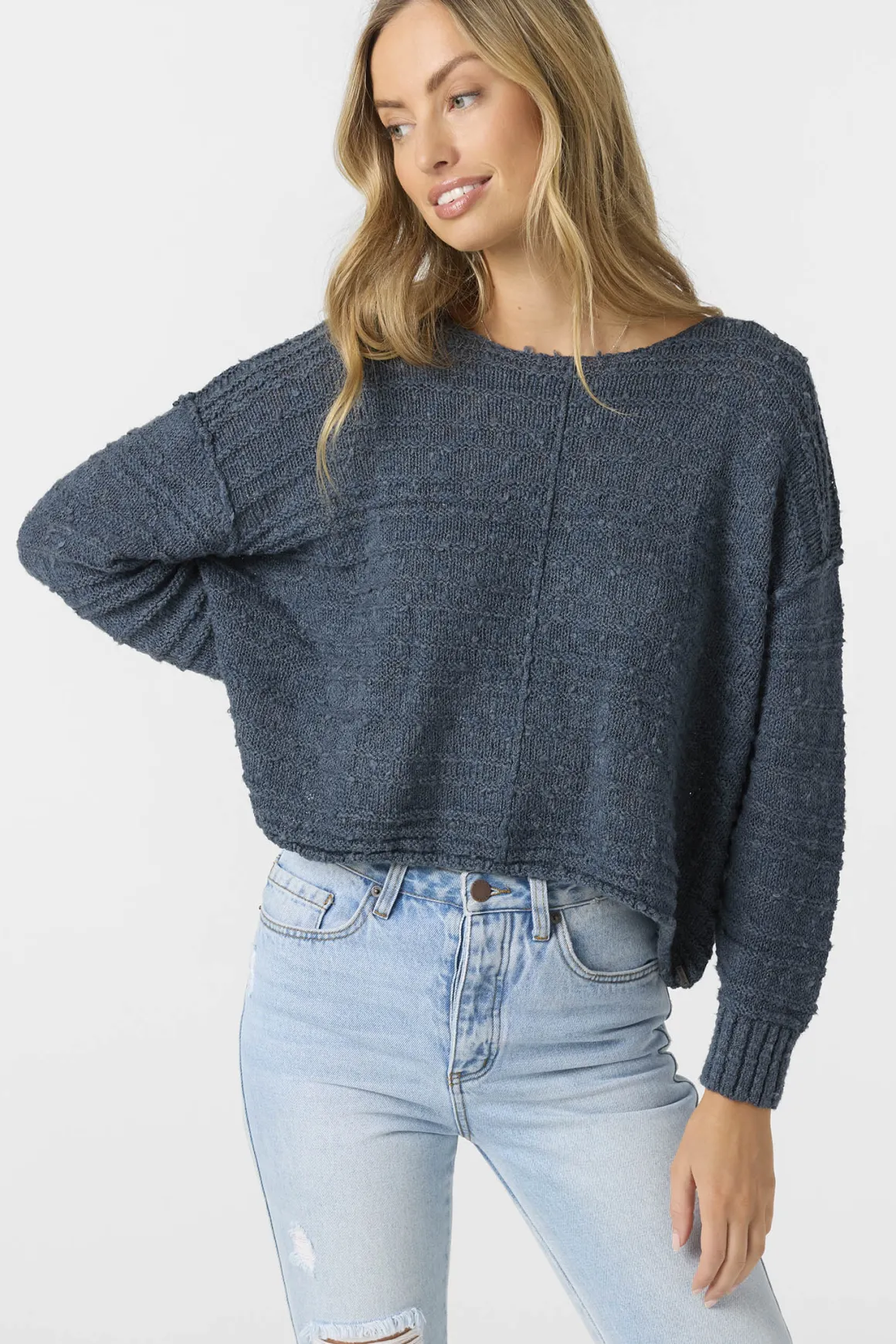 Ease into colder days with this light and comfy pullover sweater. It features a skimmer length fit, seam details and solid color wash.