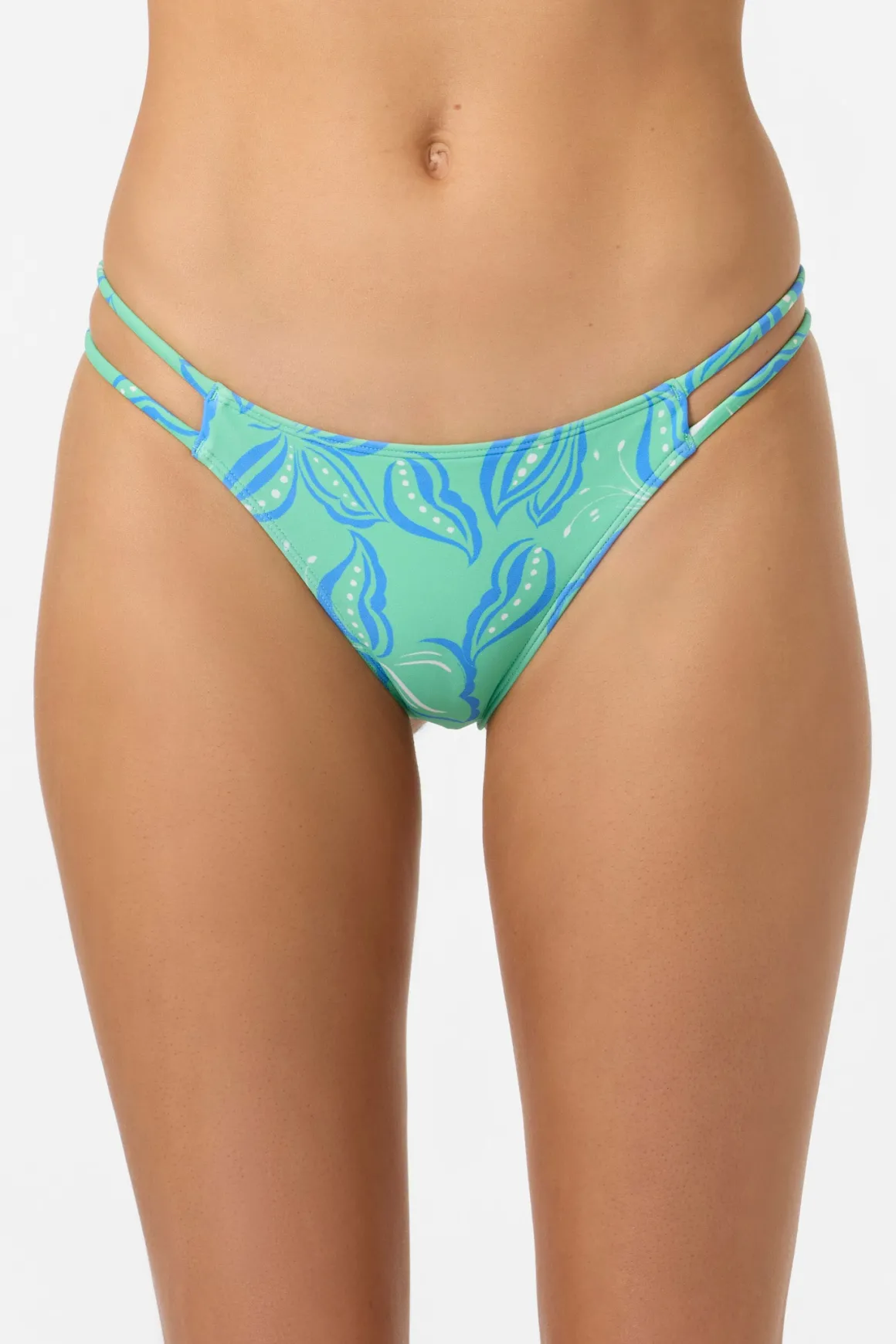 Get ready for beach days. This bikini bottom has a strappy side design, allover print and cheeky coverage fit.