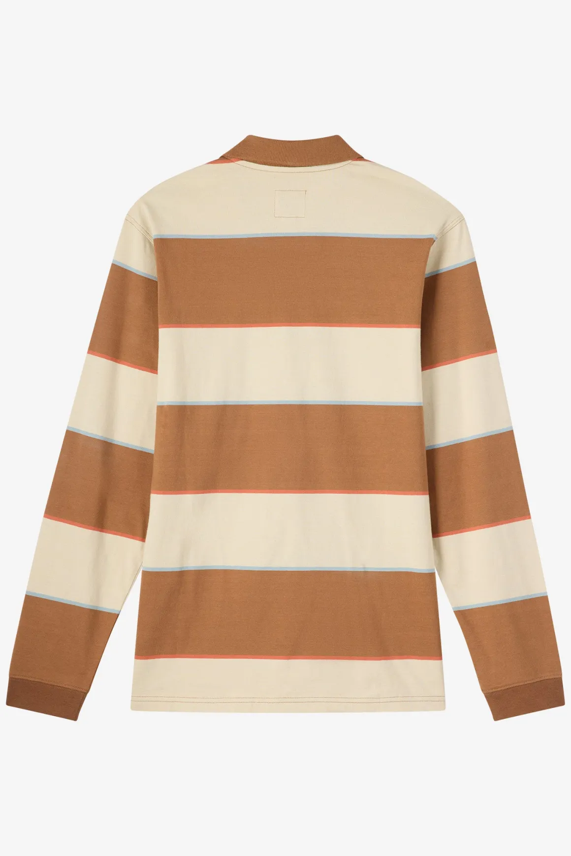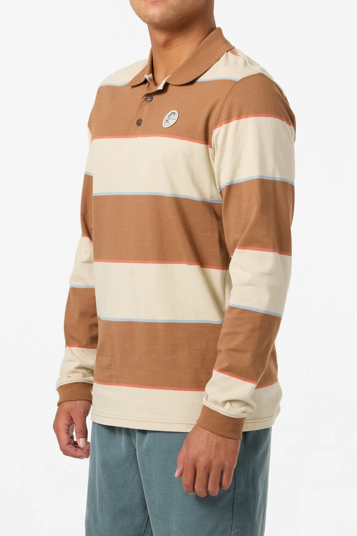 Super classic long sleeve knit polo that has a striped print and soft fabric feel.
