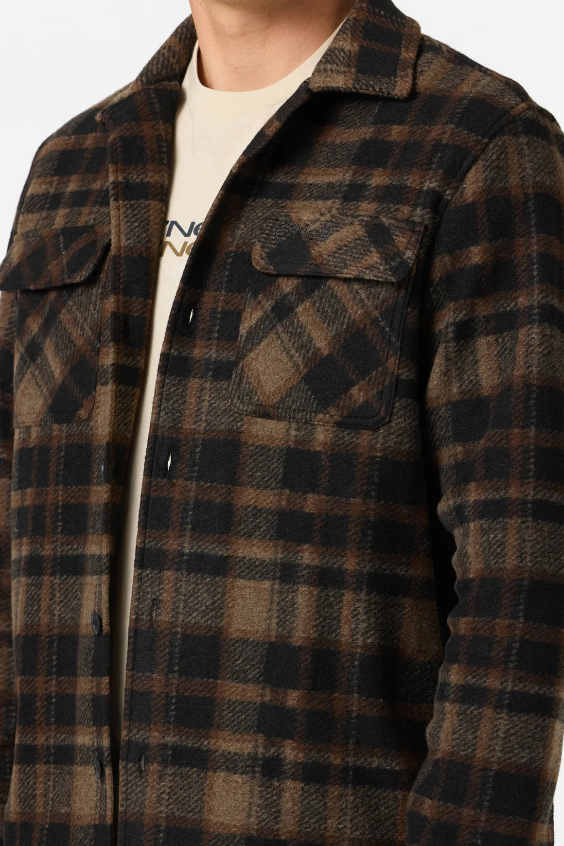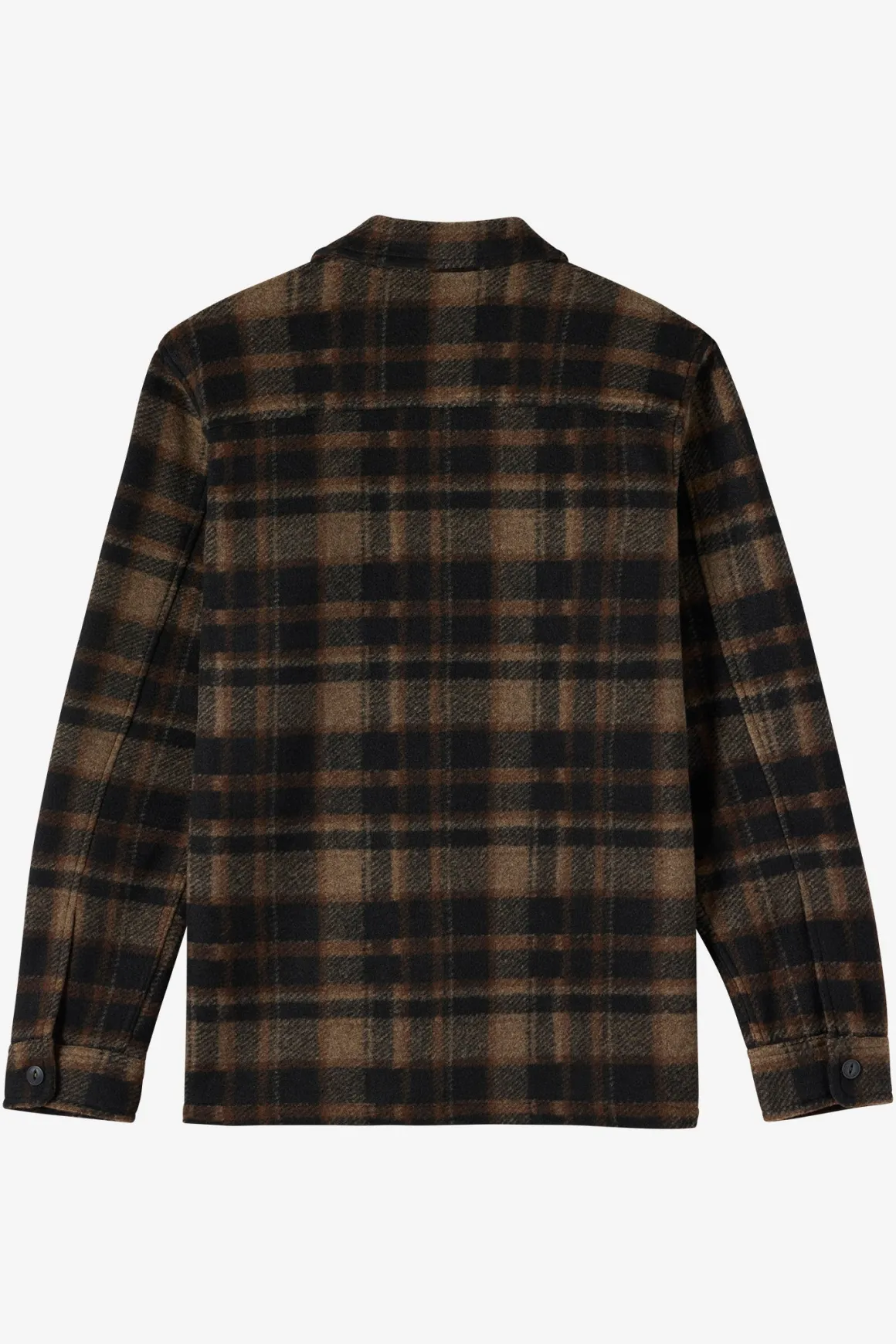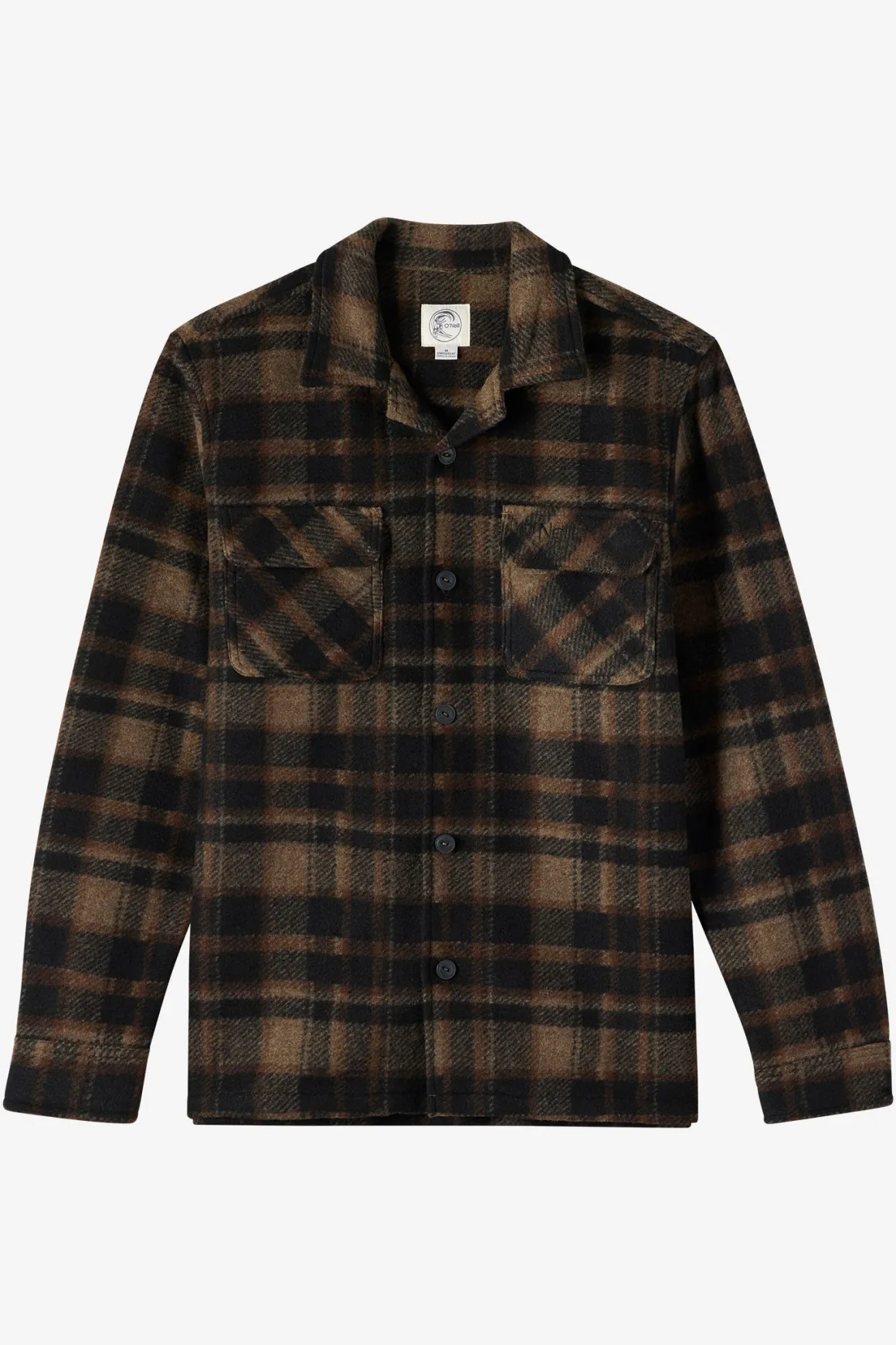 Classic style and dependable warmth. This wool button-up shirt is the perfect top layer for a morning surf check or night out. It has a heavier feel, straight bottom hem and classic plaid print.