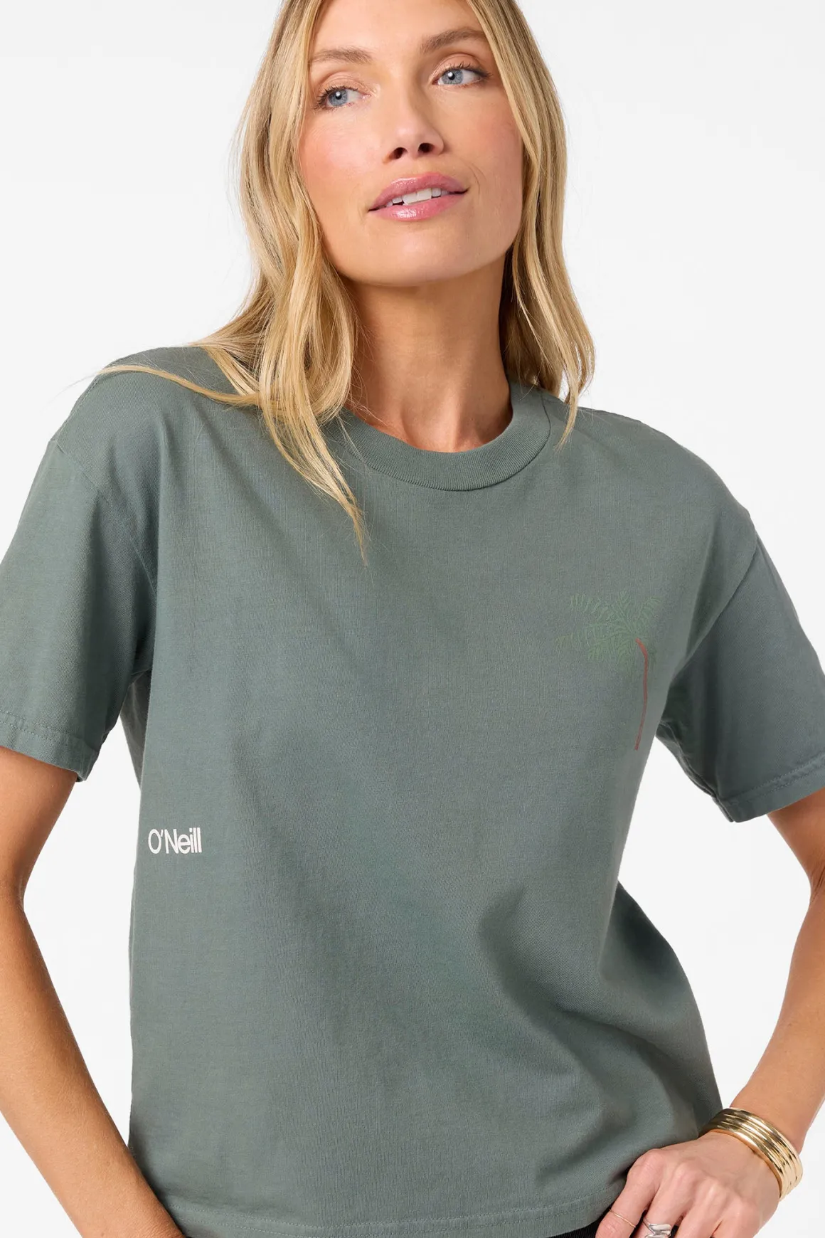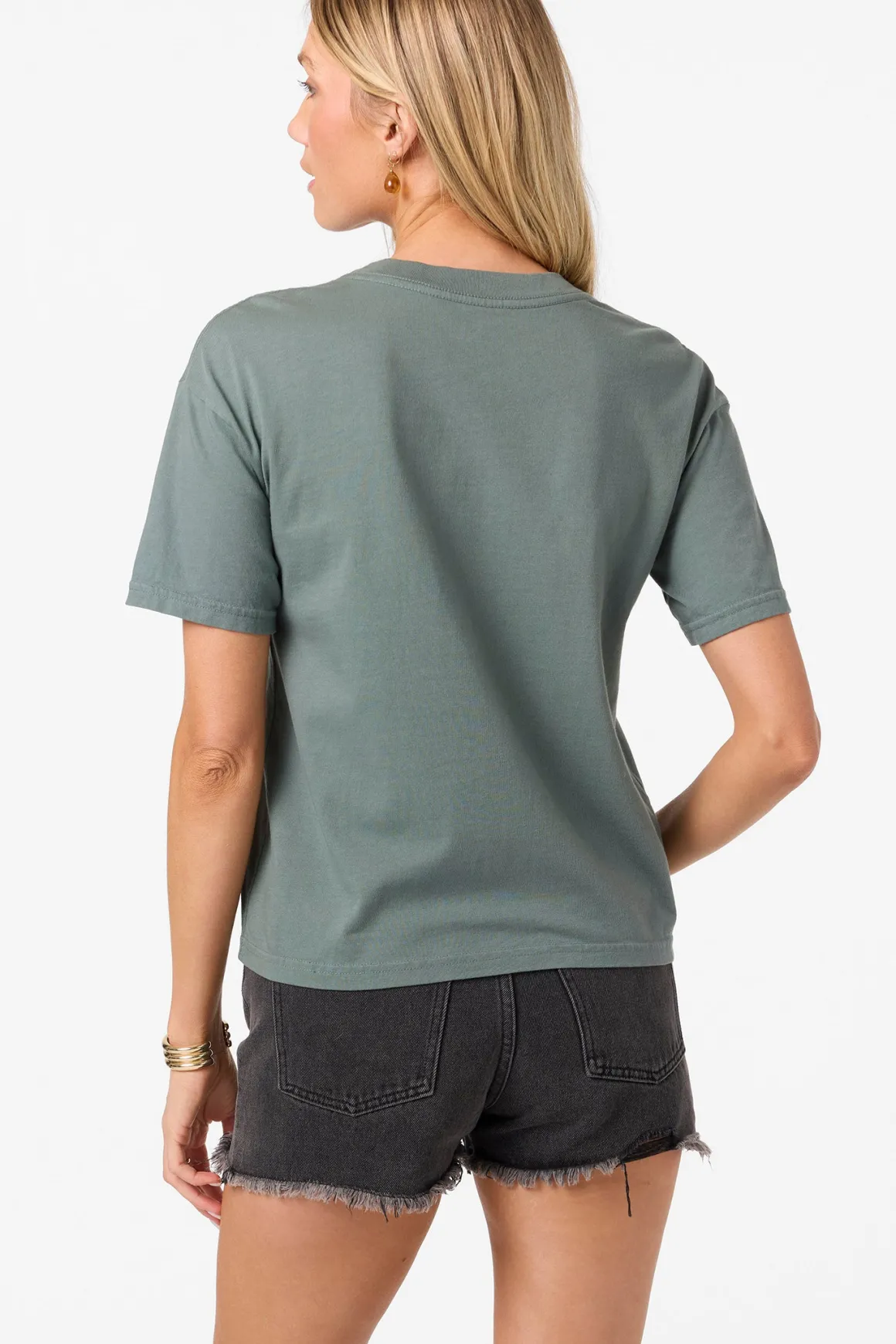 This is an oversized fit, casual, soft cotton tee that has a garment dye design and high-quality screen print.