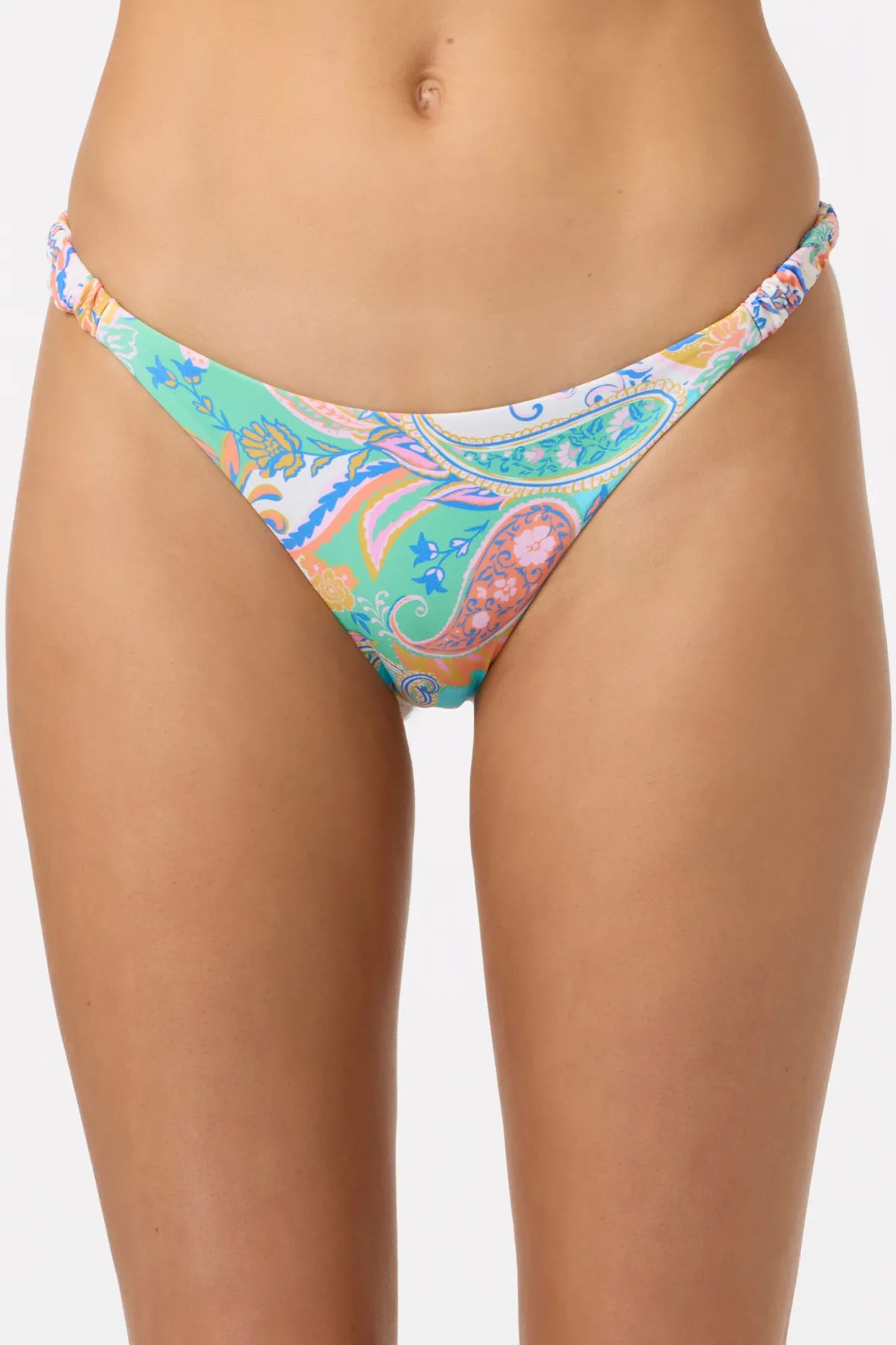 Get some sun and take a dip in this single strap bikini bottom. It features a medium coverage fit, allover print and ruched side strap detail.