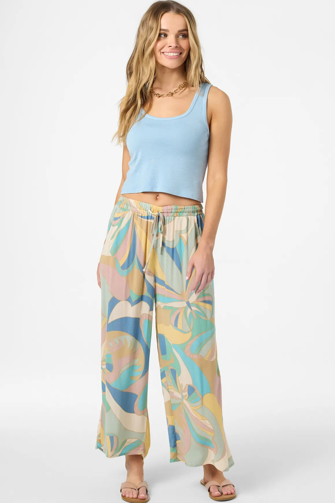 A full-length bright and flowy pant made for easy, care-free style.