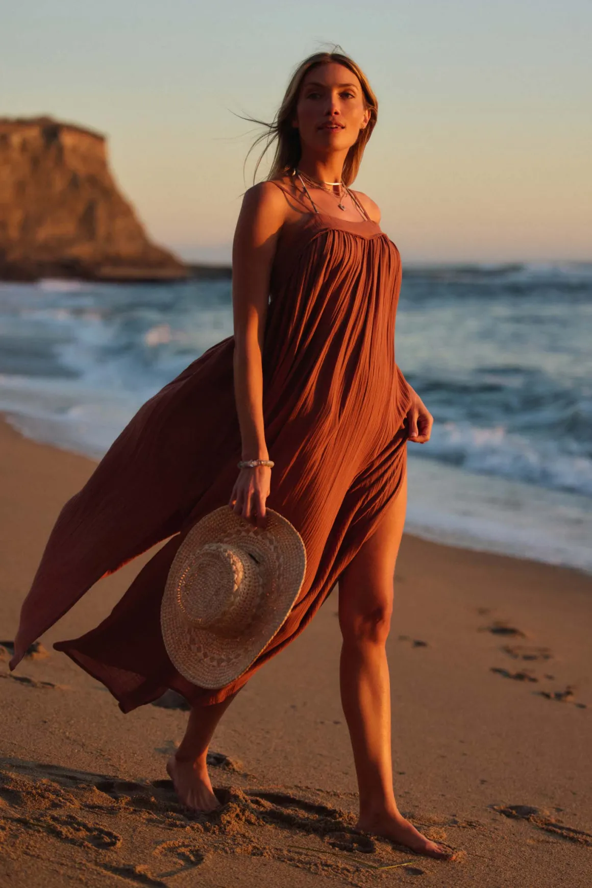 - Women’s Solid Woven Maxi Cover-Up Dress