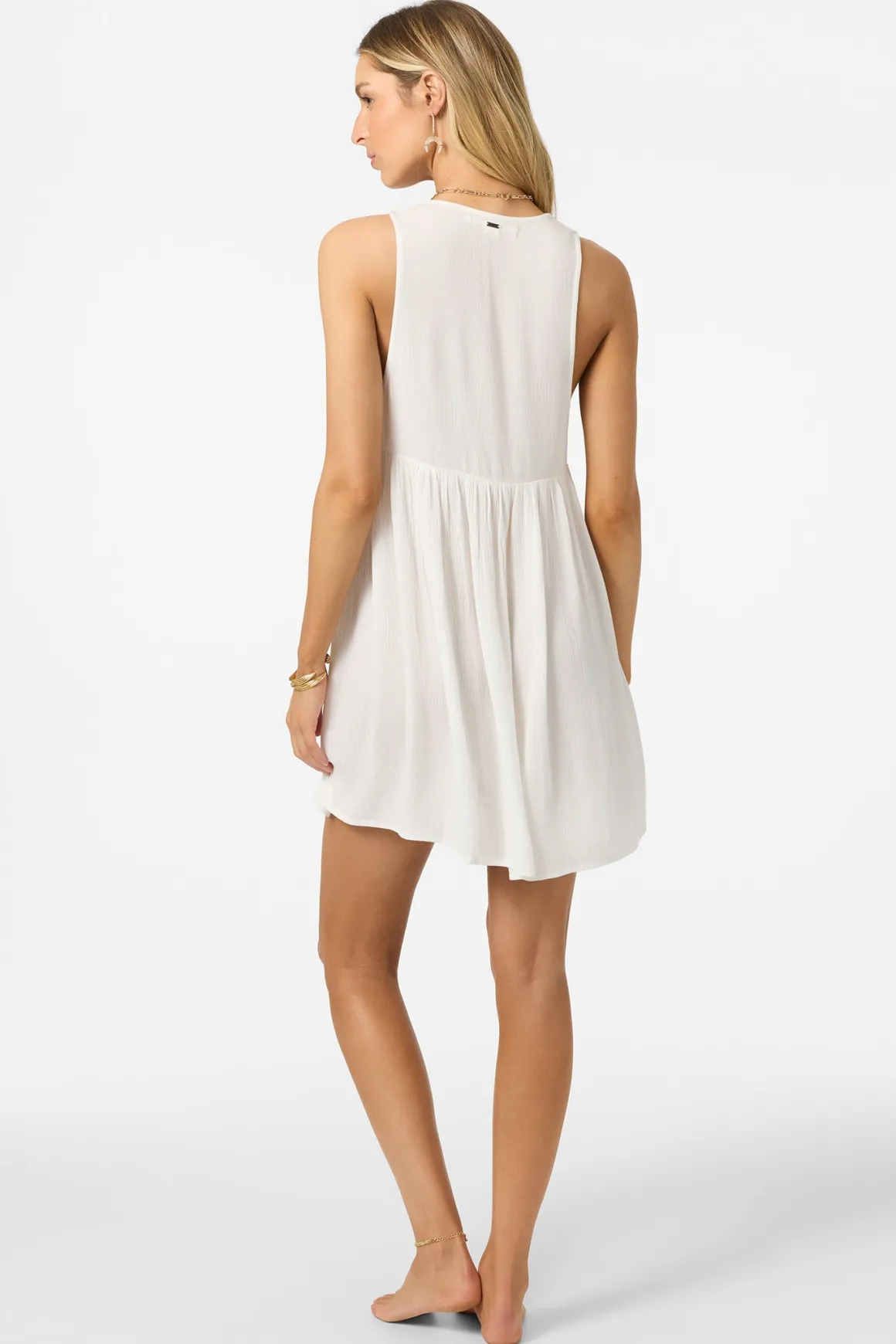 Ready for sunny days by the water. This flowy cover-up dress has a solid color design, mini length fit and tiered skirt detail.