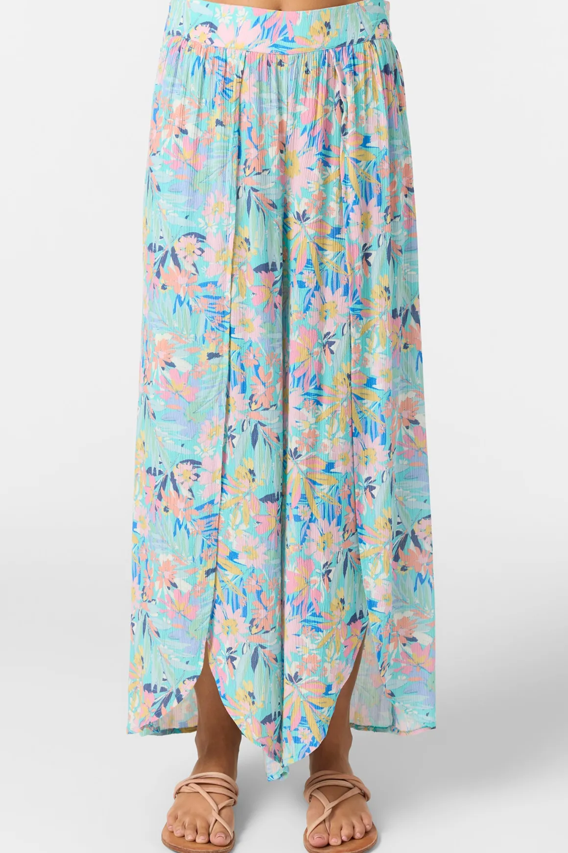 Laid-back, flowy woven pant that radiates effortless style. It features an elastic waist, wider fit and split leg detail.