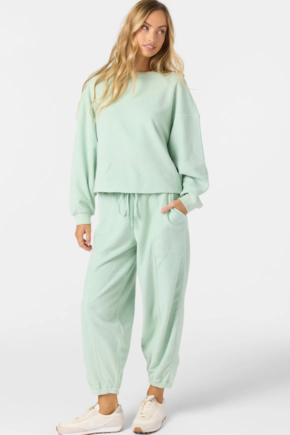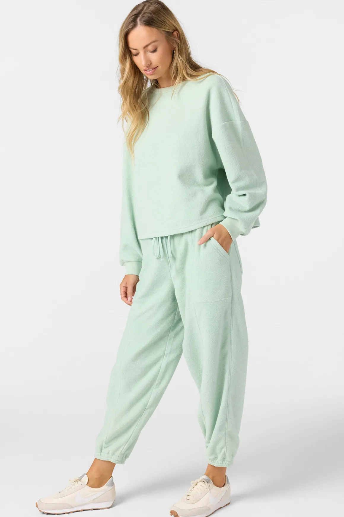 Cozy up in this essential knit pullover. It features a soft cotton-terry fabric feel, crew neckline and oversized fit.