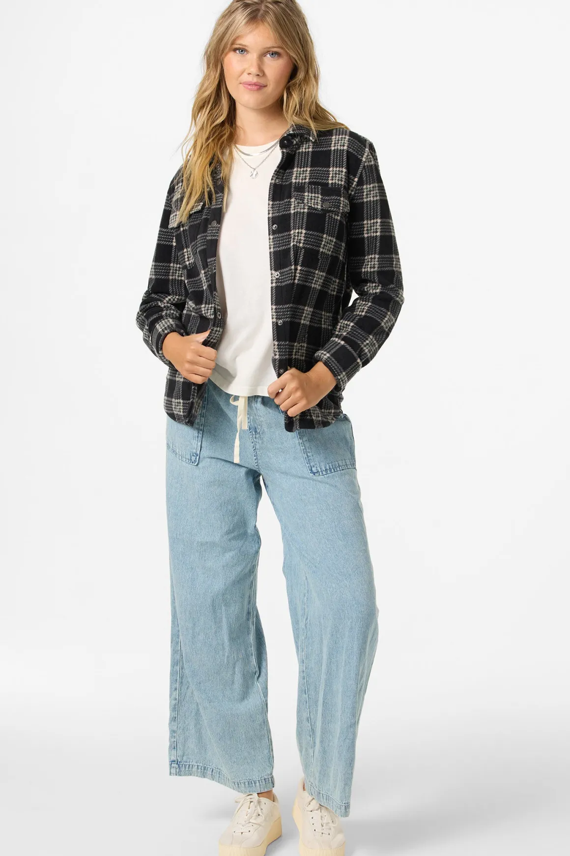 Wrap yourself in cozy comfort with our best-selling superfleece button-up, the ultimate layer for chilly days and laid-back nights. This plaid beauty boasts a super-soft feel, snap-up closure, and just the right length to pair perfectly with your favorite bottoms.