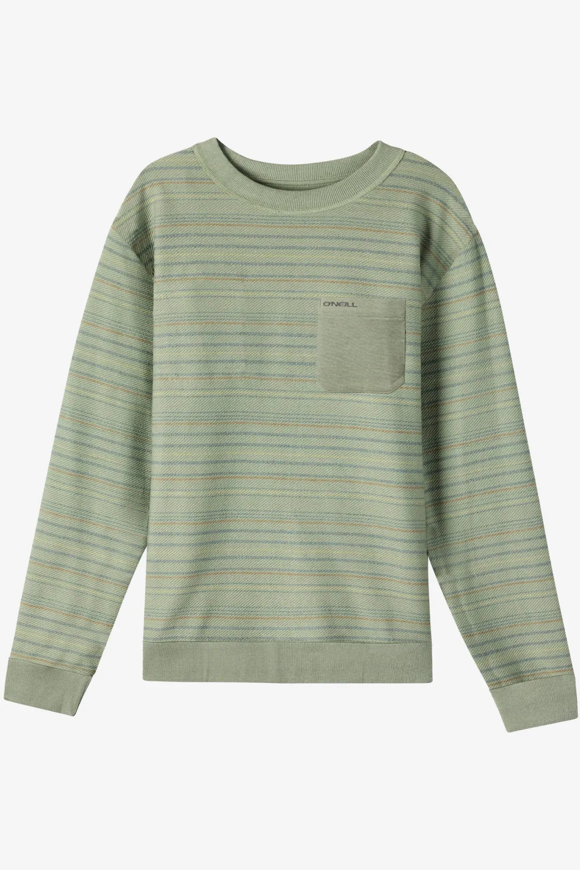 Easy to wear pullover crewneck sweatshirt that features a front colorblock pocket detail and soft french terry fabric feel.
