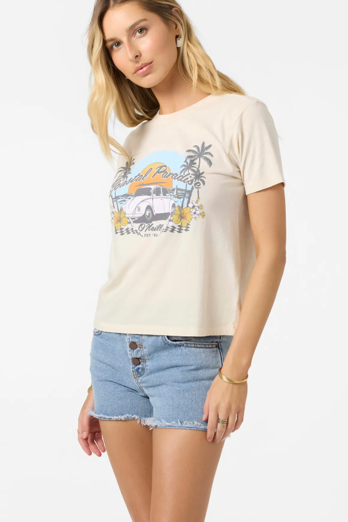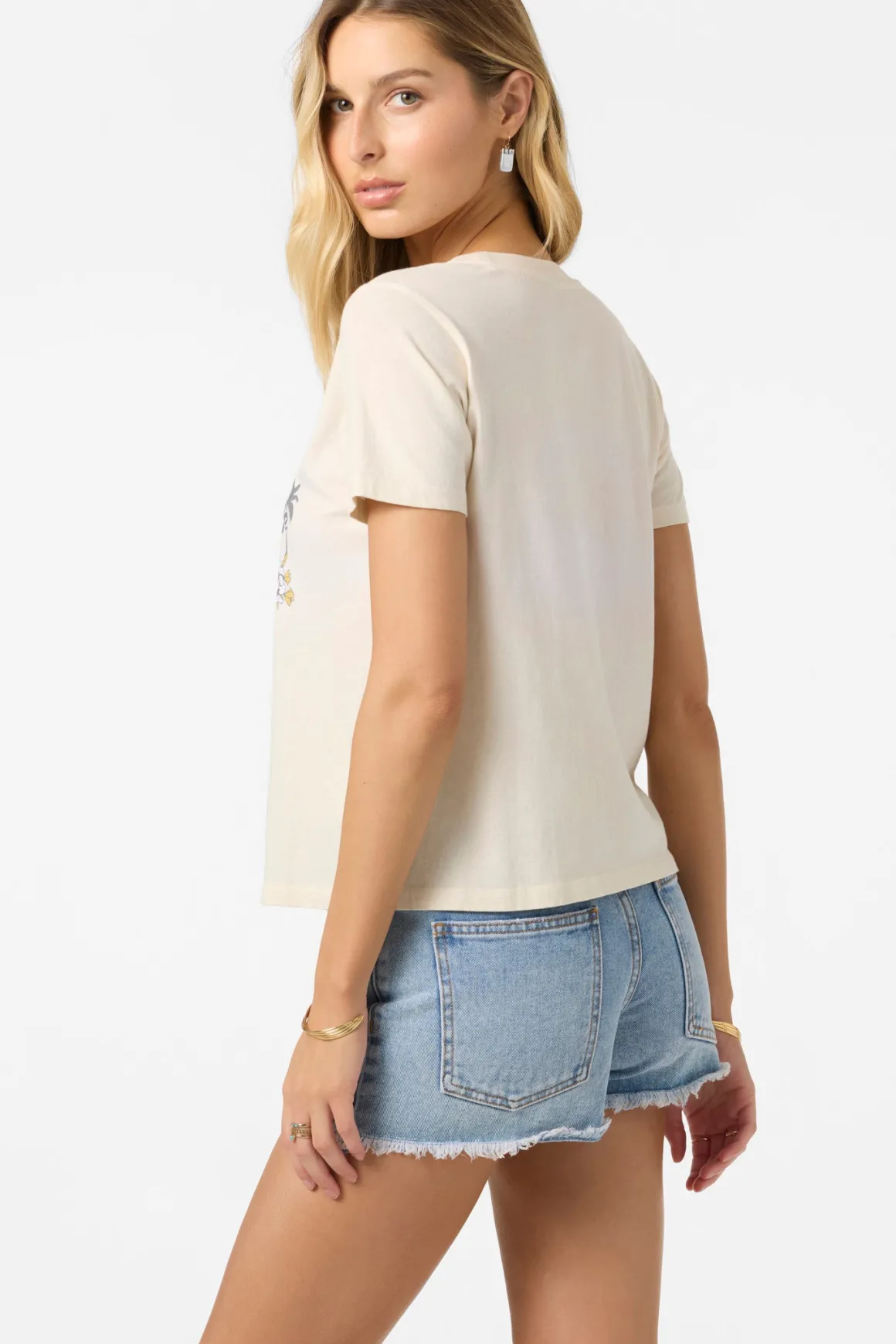 Effortlessly cool slouchy fit graphic tee that features a pigment dye design and high quality screen print.