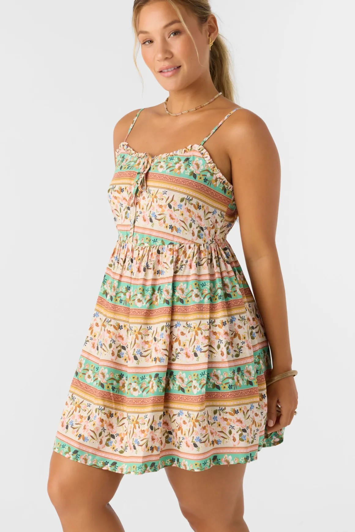 Ready for sunshine woven mini dress that features a flowy fit design and colorful floral print.