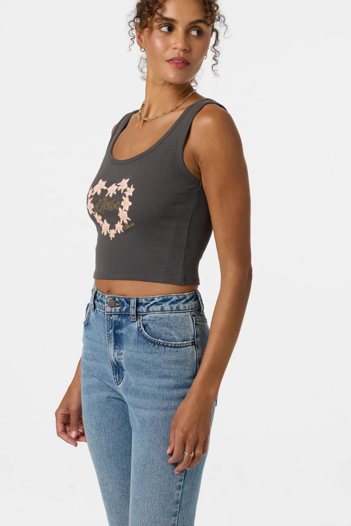 A casual tank featuring a quality screen print and scoop neck.