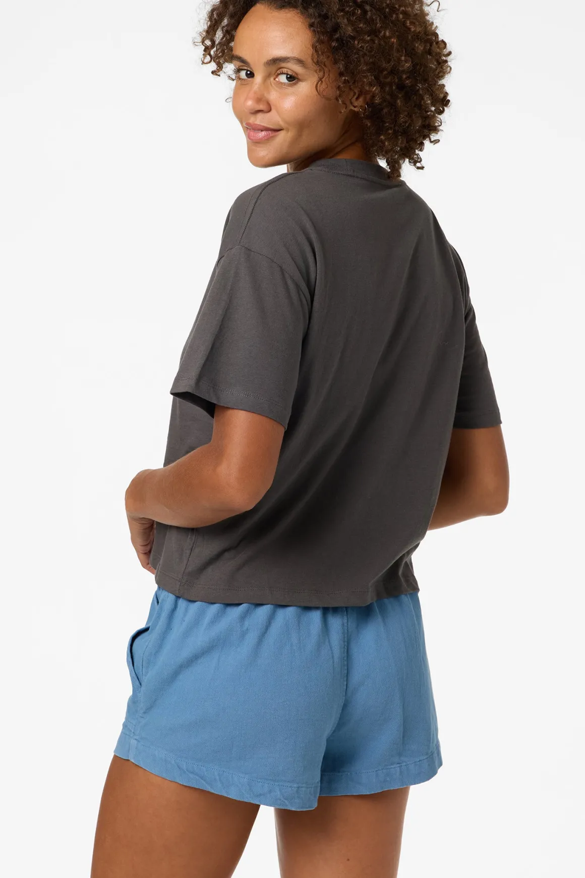 This is an oversized fit, casual, soft cotton tee that has a garment dye design and high-quality screen print.