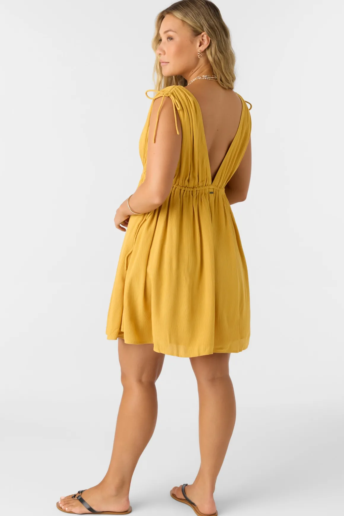 Embrace laid-back elegance in our versatile mini dress, featuring adjustable drawstrings and a flattering v-neck, crafted from soft crinkled viscose for a look that’s both effortless and chic.