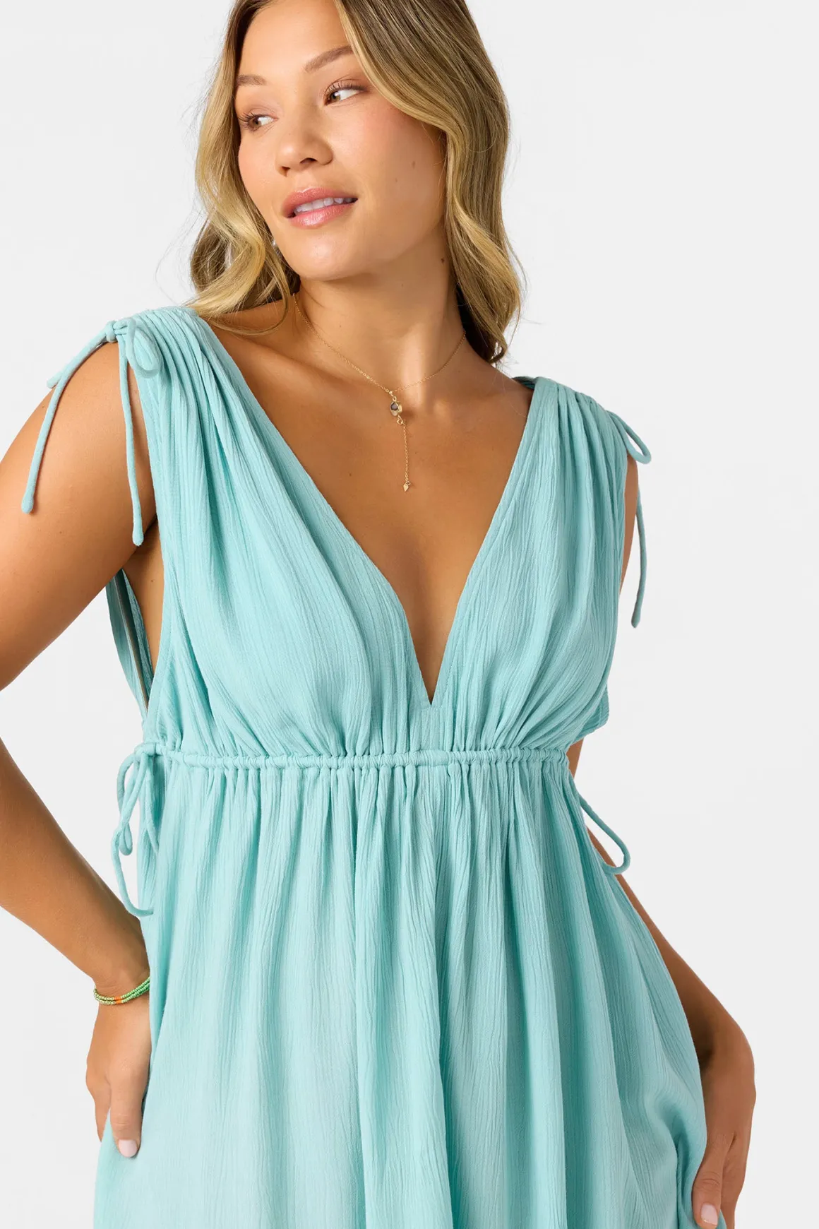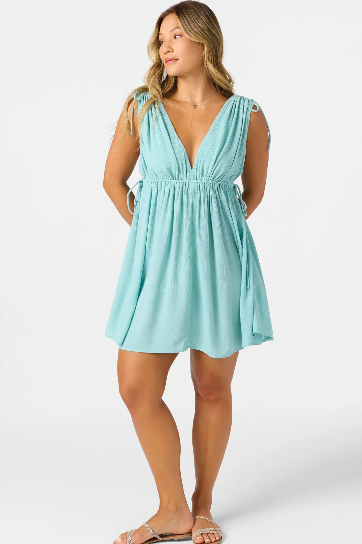 Embrace laid-back elegance in our versatile mini dress, featuring adjustable drawstrings and a flattering v-neck, crafted from soft crinkled viscose for a look that’s both effortless and chic.