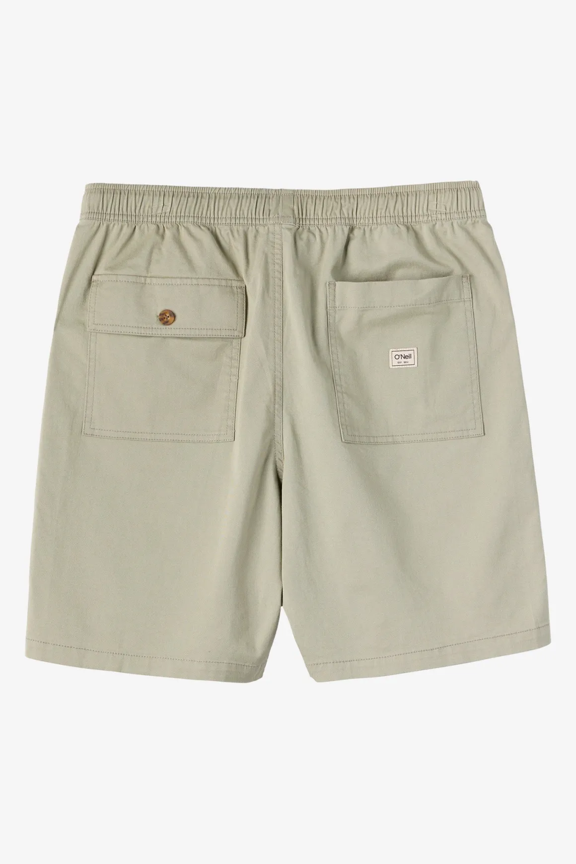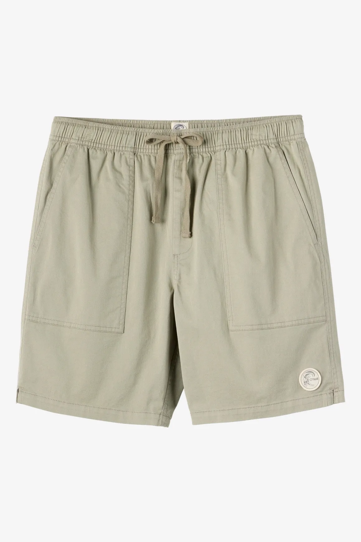 Relaxed and comfortable cotton stretch short that features a front patch pocket design, elastic waist with drawcord and vintage style circle surfer logo.