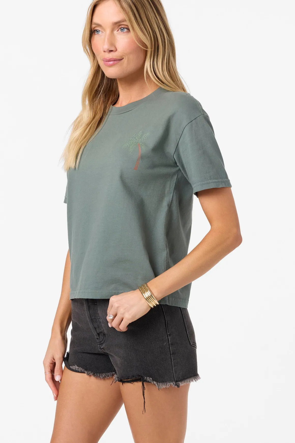 This is an oversized fit, casual, soft cotton tee that has a garment dye design and high-quality screen print.