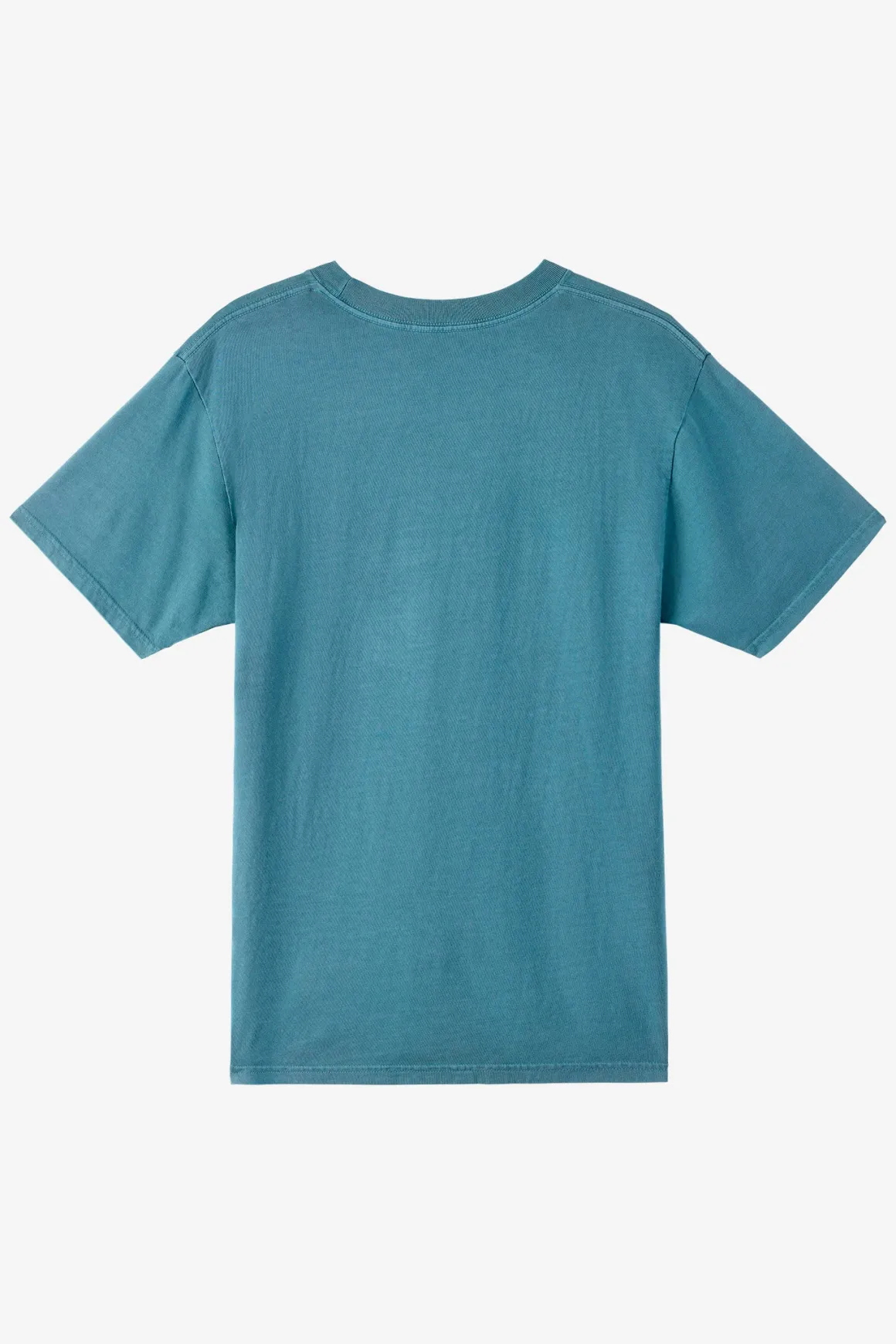 Premium 20 singles garment dye pocket tee that has a quality soft-cotton design. The relaxed fit is roomier in the body and sleeves.