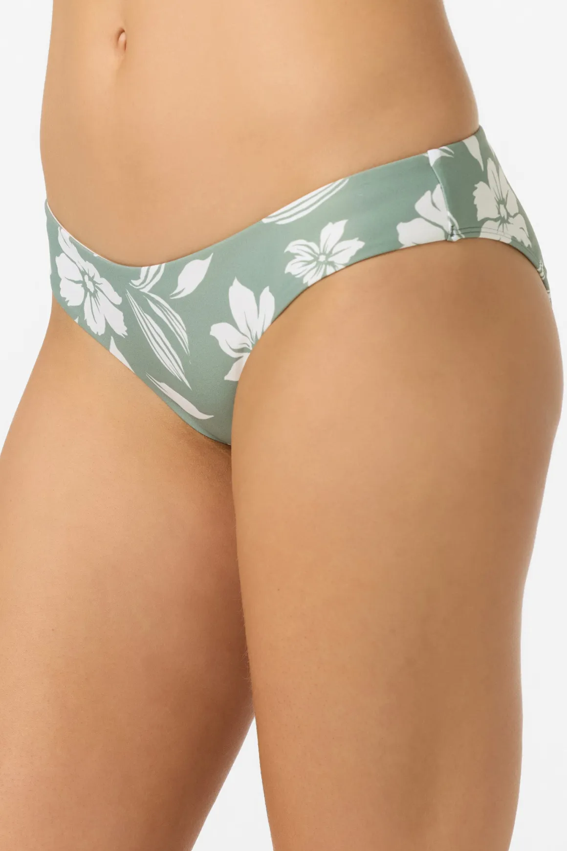This wide strap bikini bottom has a hipster fit design, full coverage and cute floral print.