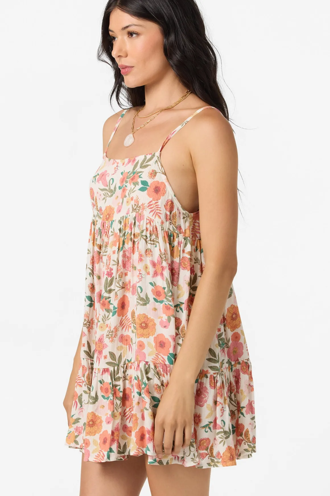 Ready for sunny days by the water. This flowy cover-up dress has an allover print design, mini length fit and tiered skirt detail.