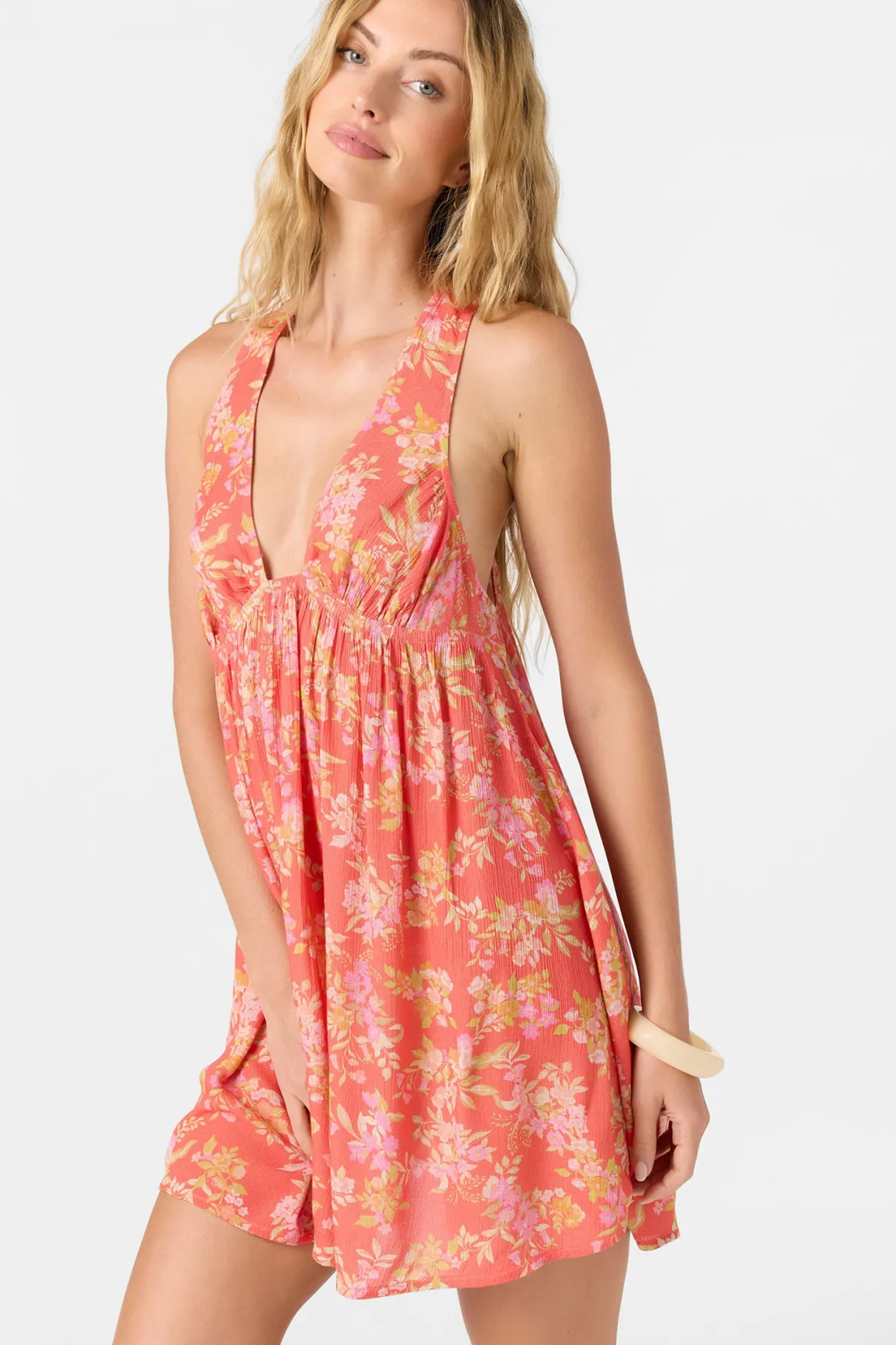 Cute and flowy cover-up dress to elevate your beach look. It features an allover print design and deep v-neckline.
