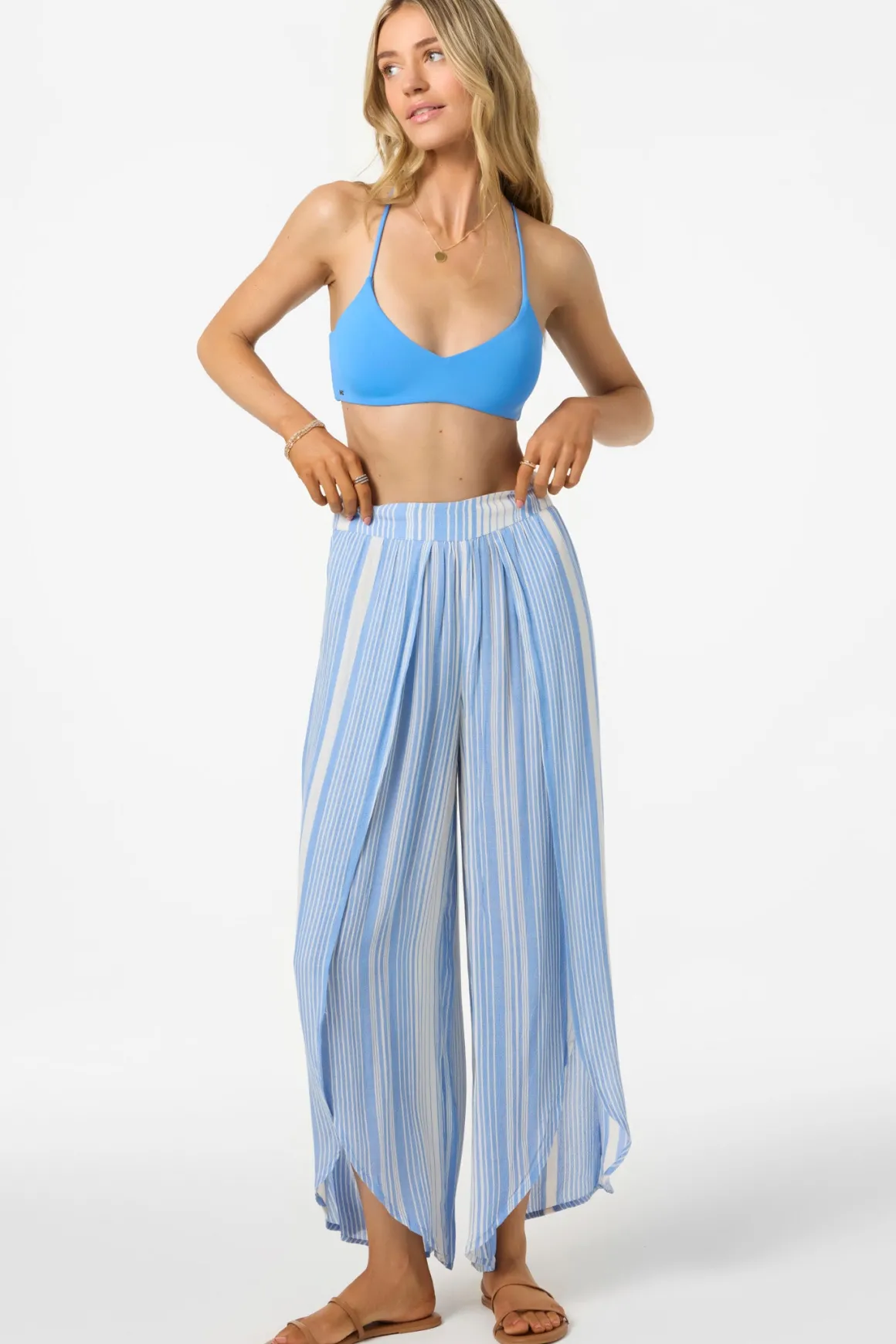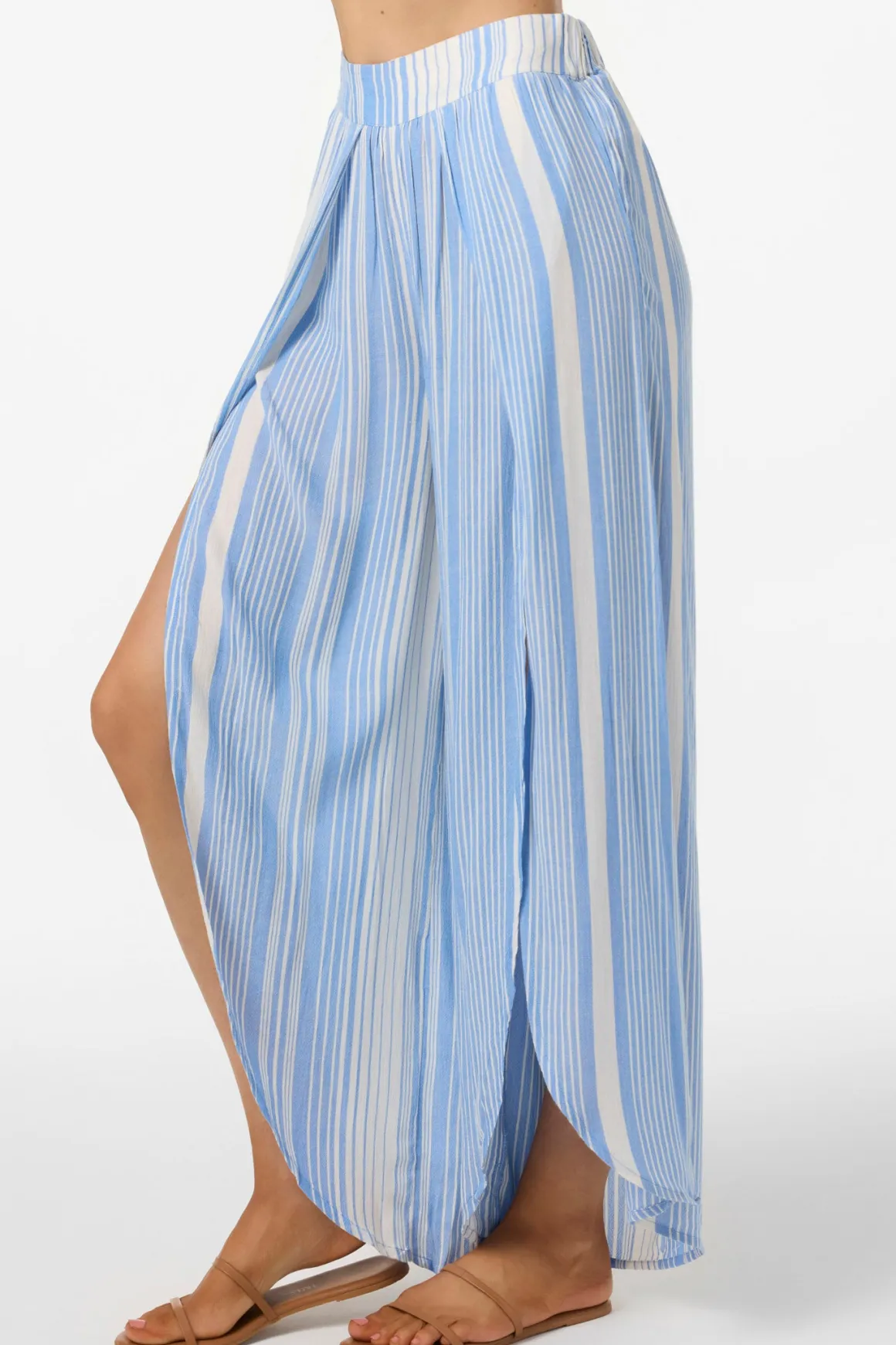 Laid-back, flowy woven pant that radiates effortless style. It features an elastic waist, wider fit and split leg detail.