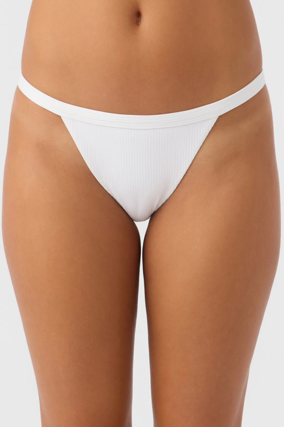 Essential single strap bikini bottom that has a cheeky coverage fit, bare side detail and solid color wash.