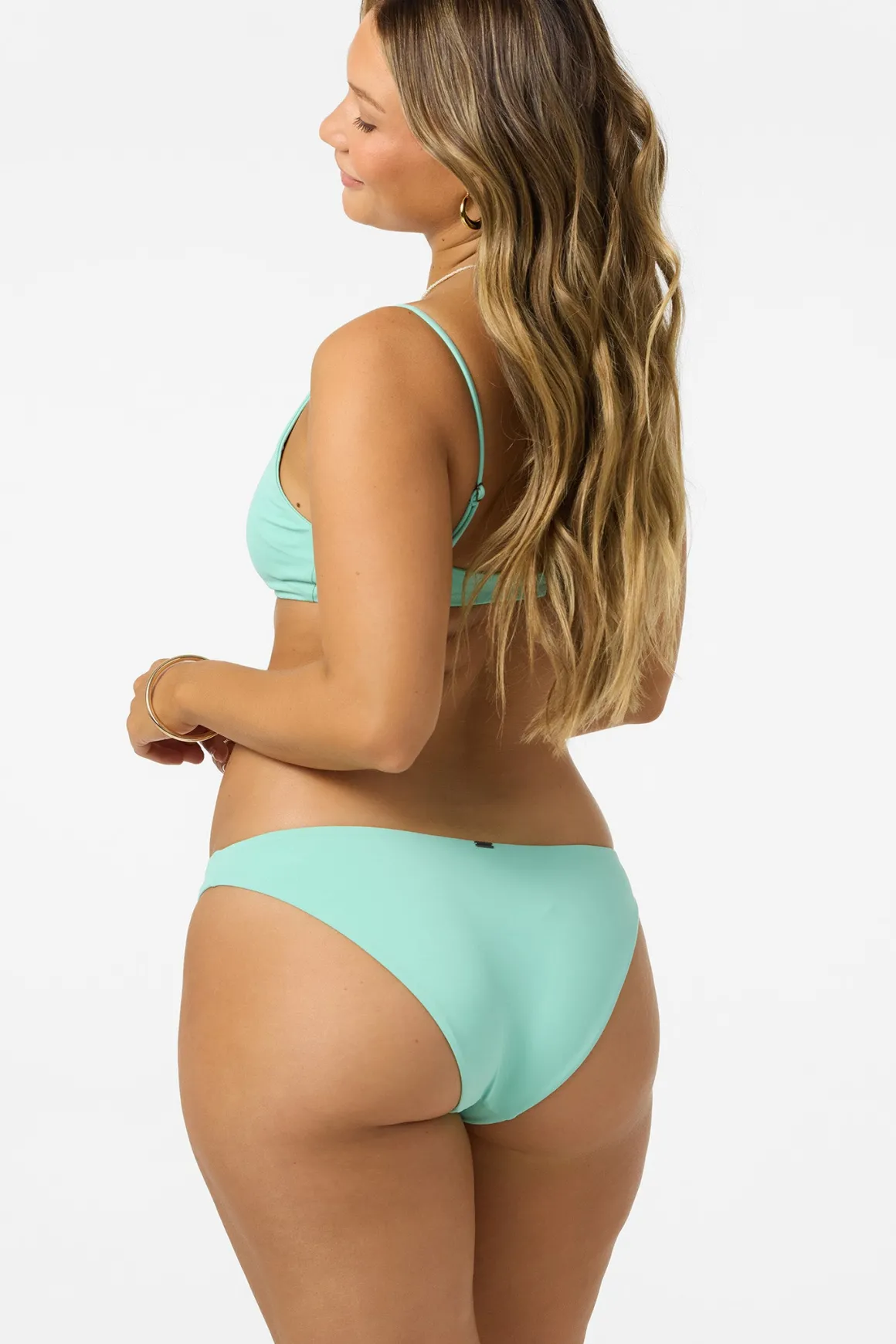 Head to the sand in this classic, single strap bikini bottom. It has a medium coverage design and solid print.