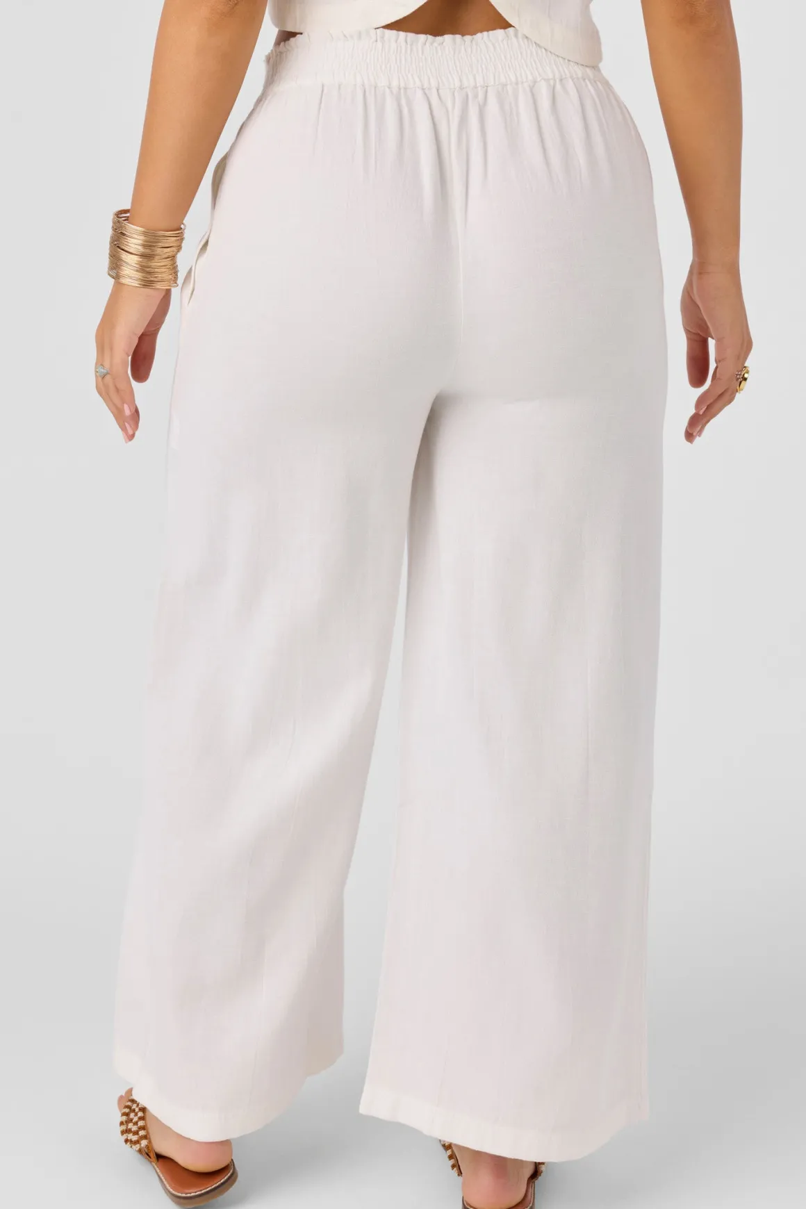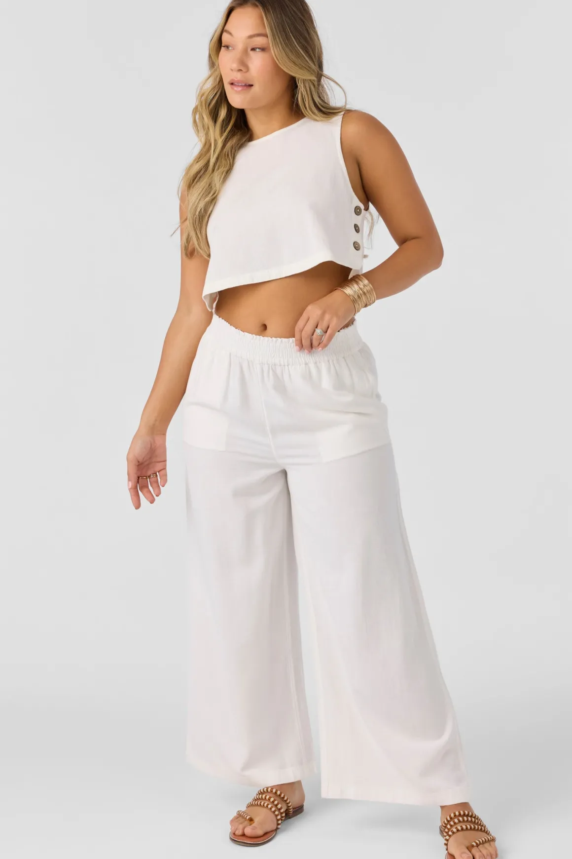 Essential woven pant that has a relaxed, flowy leg fit, solid color wash and flood length fit.