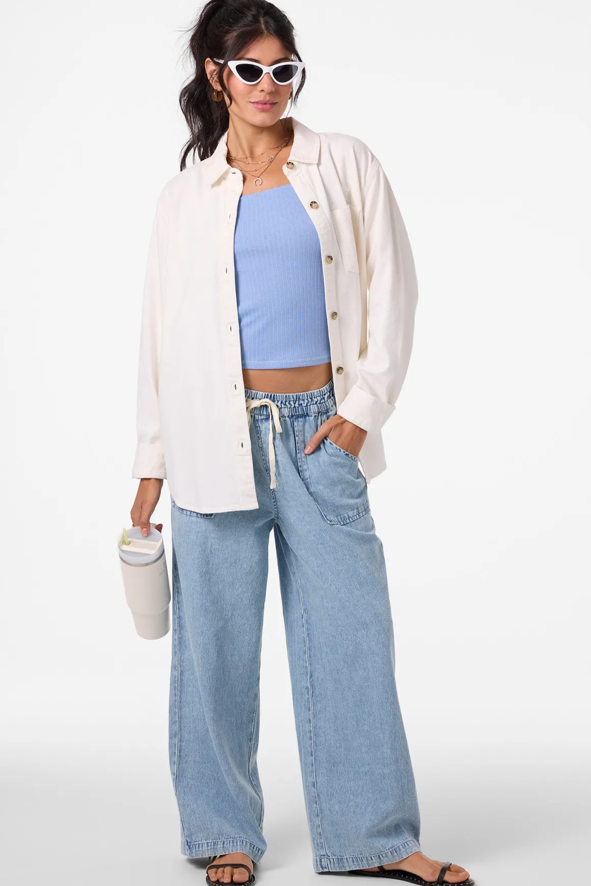 - Women’s woven button-up shacket