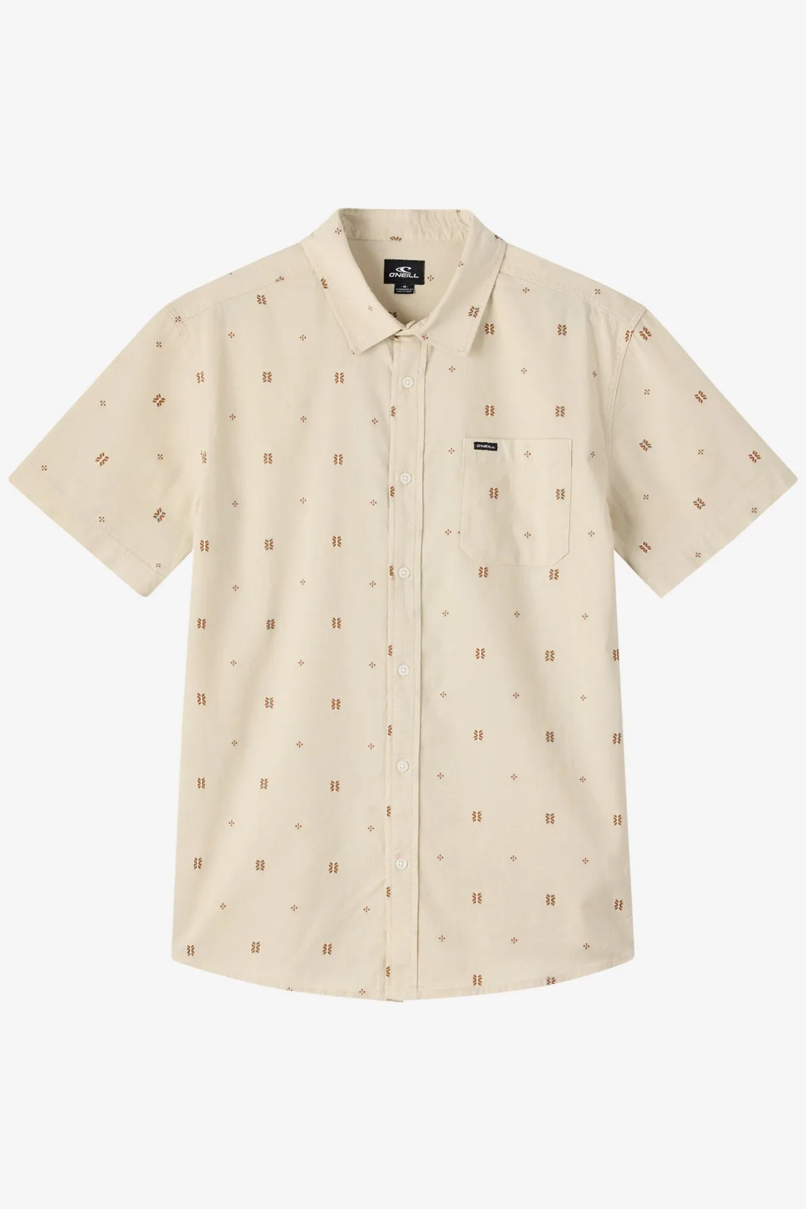 For sunshine and good times ahead. This essential button-up shirt has a front button closure, single chest pocket and allover print.