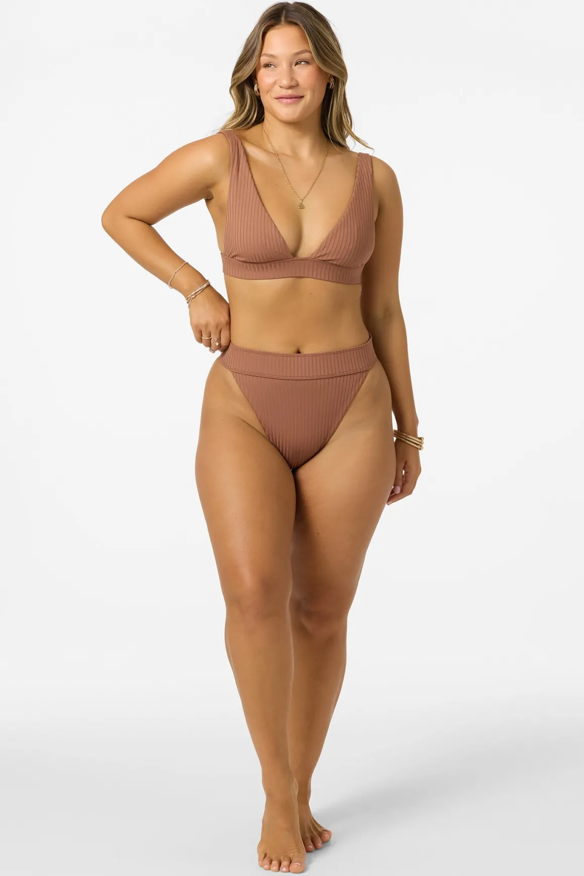 Perfect for any day by the water, this cheeky bikini bottom has a wider waistband design and high-rise open leg detail.
