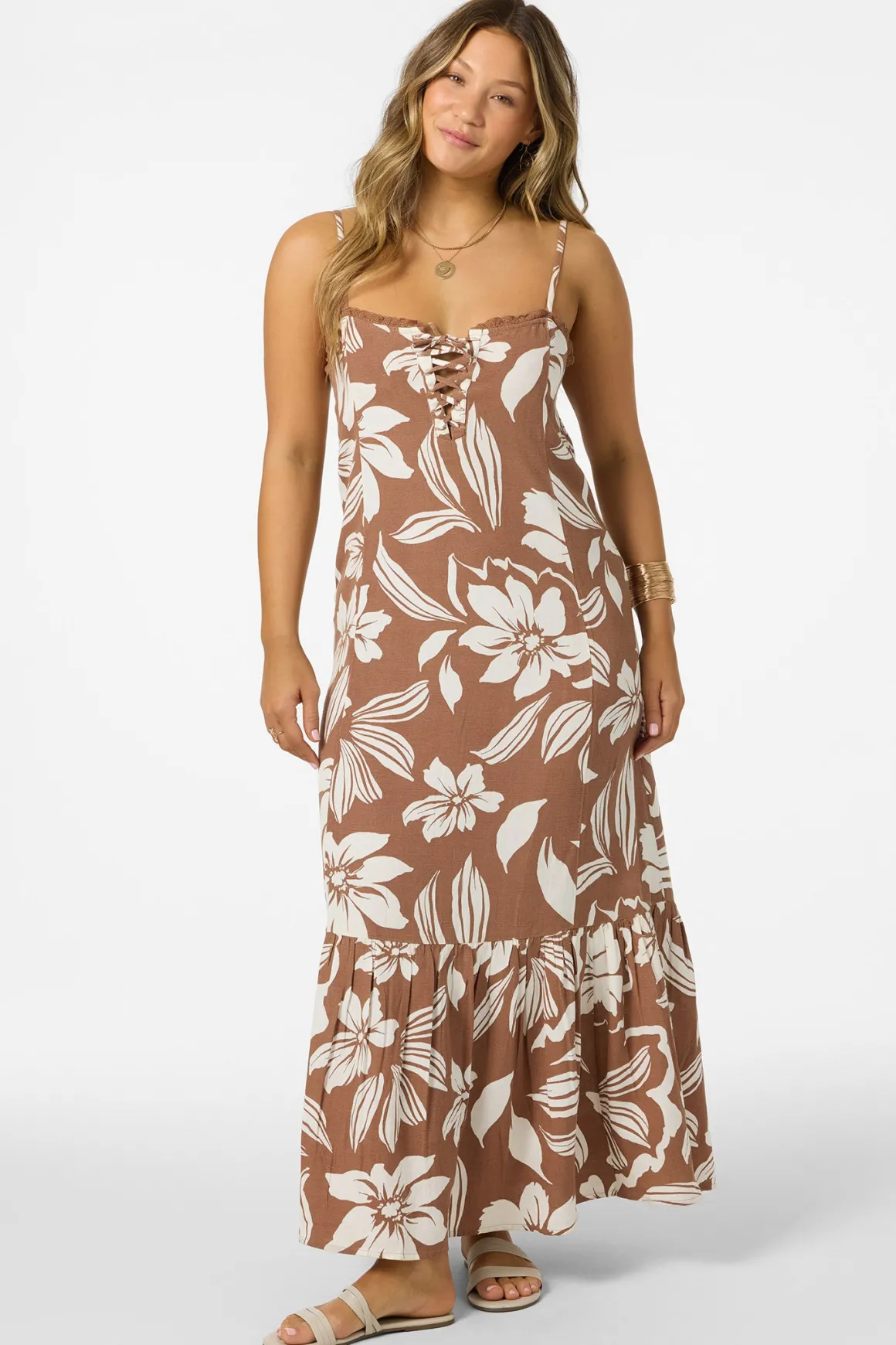 A delicate Midi dress that moves with you. Featuring decorative lace detail and adjustable shoulder straps.