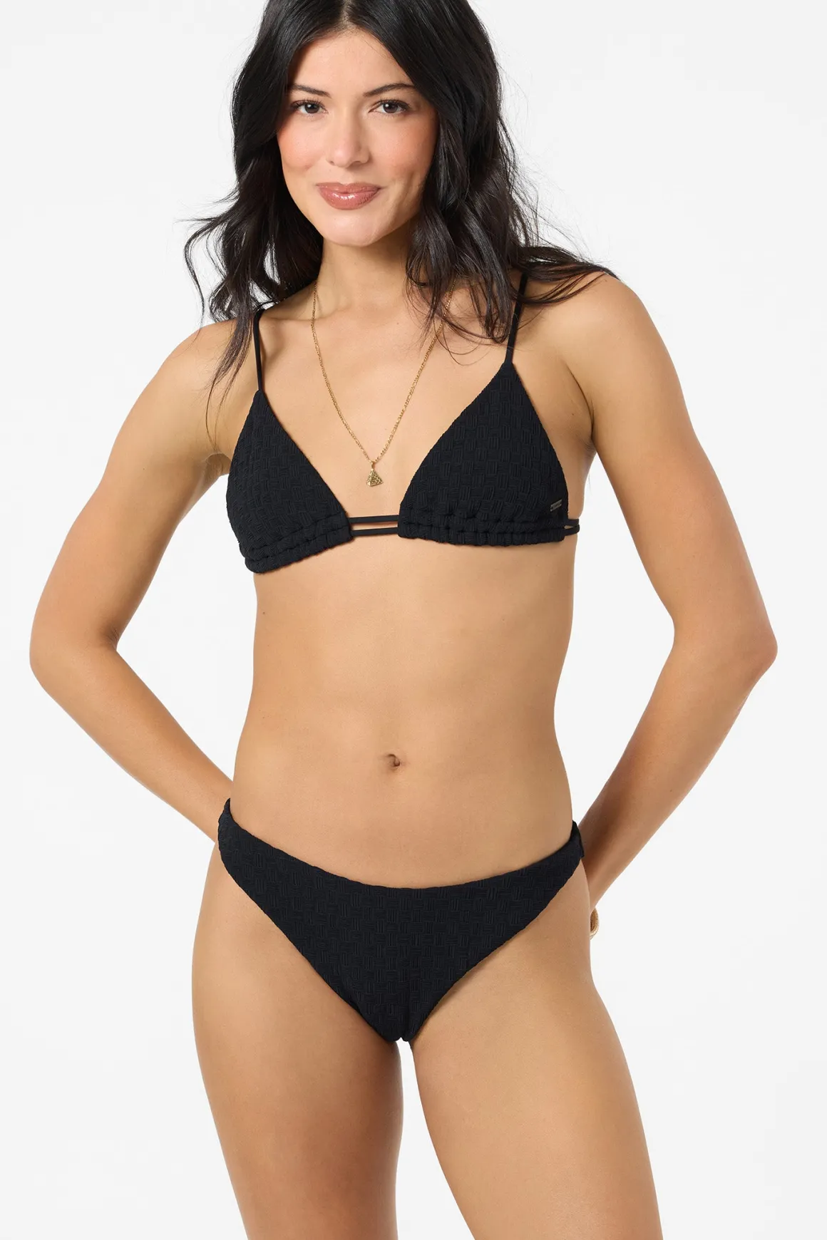 Soak up the sun in this classic tri top bikini. Featuring adjustable straps and a behind the back tie.