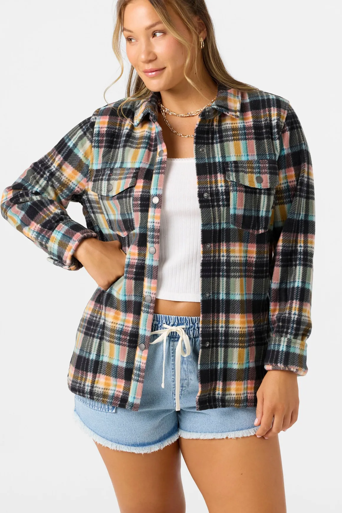 Wrap yourself in cozy comfort with our best-selling superfleece button-up, the ultimate layer for chilly days and laid-back nights. This plaid beauty boasts a super-soft feel, snap-up closure, and just the right length to pair perfectly with your favorite bottoms.